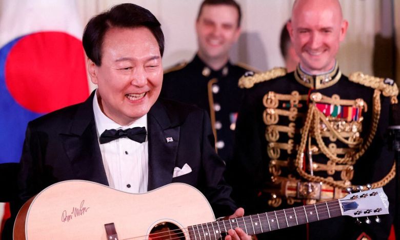 2023년 4월 미국 국빈 방문에선 윤 전 대통령이 만찬장에서 부른 노래에 초점이 쏠렸다. 이 자리에서 바이든 대통령으로부터 미국 팝스타 돈 맥클린의 친필 사인이 담긴 통기타를 선물 받은 윤 전 대통령은, 내빈들의 요청을 받고 애창곡인 돈 맥클린의 ‘아메리칸 파이’를 직접 불러 화제를 모았다.