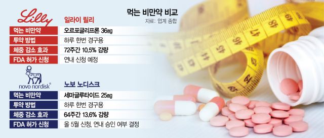 경쟁사인 노보 노디스크는 앞서 올 5월 위고비의 경구 제형을 미 FDA에 허가 신청했다. 올해 말까지 허가 여부가 결정될 것으로 전망된다. 이 약은 임상 3상에서 64주간 복용하면 체중이 평균 13.6% 감량되는 것으로 확인됐다.
