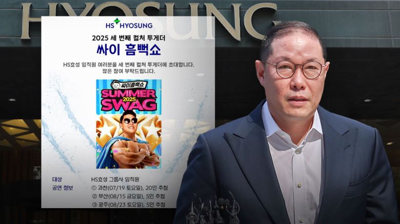 “HS효성, 임직원에 ‘싸이 흠뻑쇼’ 티켓…조현상표 ‘컬처 투게더’ 확대" (2025.8.22, 서울경제)내용은 대동소이합니다. 조현상 부회장의 제안으로 HS효성의 사내 이벤트가 열렸다는 겁니다. 임직원 100여 명을 뽑아 싸이 흠뻑쇼를 단체 관람시켜주는 이벤트입니다. (기사에는 100여 명이라고 나와있지만 첨부된 포스터에는 30명을 추첨한다고 되어 있습니다.) HS효성 계열사의 임직원 숫자가 1만여 명이니 100명이면 1%, 30명이면 0.3%가 싸이 흠뻑쇼 무료 관람의 혜택을 입은 셈이죠. 싸이 흠뻑쇼의 티켓 가격이 대략 15만 원이니까 적게는 450만 원에서 많게는 1,500만 원 정도를 들여 사내 이벤트를 하나 한 셈입니다. 참고로 HS효성 계열사의 매출은 7조원 정도입니다. 이게 그렇게 대단한 기사 가치가 있는 일인지는 상식적인 독자라면 판단할 수 있을 겁니다.