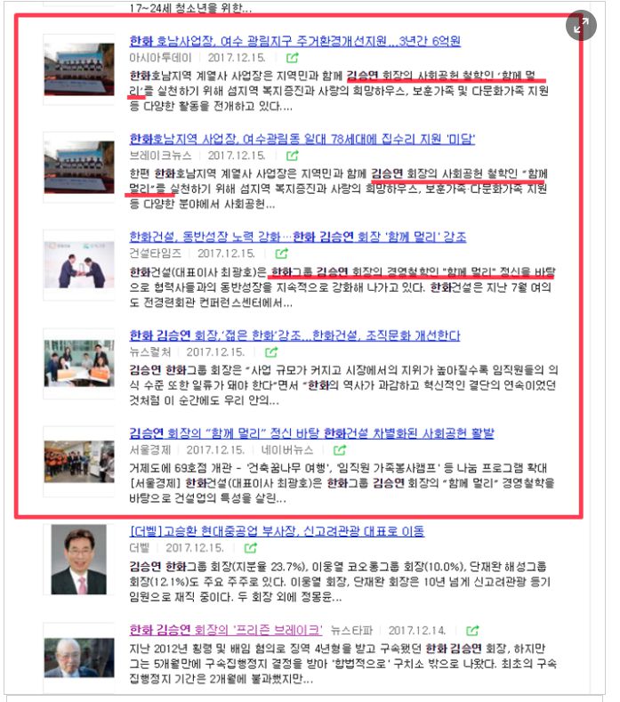 제 기억으로 당시 한화그룹이 제 기사를 묻어버리기 위해 동원한 언론사는 약 40여 곳이었습니다. 이번에 HS효성은 70곳입니다. 8년 사이 포털과 제휴한 매체가 더 늘어나서 그런 것인지, 아니면 한국 언론이 그만큼 더 혼탁해진 것인지 잘 모르겠습니다.
