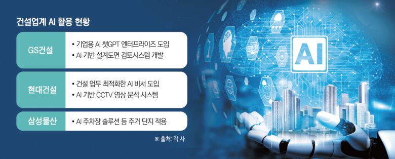 최근 산업재해 등으로 어려움을 겪고 있는 국내 건설업계가 AI 활용에 본격적으로 나서고 있다. 휴먼에러를 줄이면서 생산성을 높이는 것은 물론이고 안전 관리 강화와 주택상품 경쟁력 향상에도 적극적으로 활용하는 모습이다.