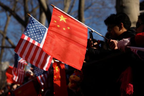 올해 2월 16일 미국 뉴욕 차이나타운에서 열린 중국 춘절 퍼레이드에서 퍼레이드 참가자들이 중화인민공화국 국기를 들고 행진하고 있다. AP=연합뉴스