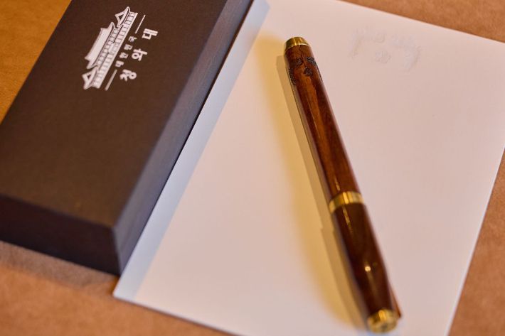 이를 계기로 당시 청와대 참모들이 '대통령 서명을 위한 전용 네임펜'을 만들기로 했고, 나무와 금속으로 된 만년필 외형에다 네임펜 심지를 넣어 편의성을 높인 대통령펜이 탄생했다고 합니다.