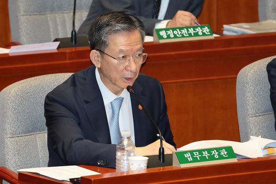 정성호 법무부 장관이 26일 오전 서울 여의도 국회에서 열린 제428회 국회(임시회) 예산결산특별위원회 2차 전체회의에서 의원 질의에 답변하고 있다. 뉴스1 |