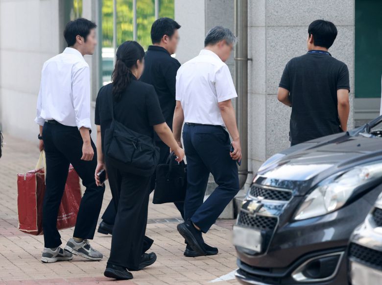 '12·3 비상계엄' 관련 내란·외환 사건을 수사하는 조은석 특별검사팀이 26일 인천시 연수구 송도동 해양경찰청에서 압수수색에 나선 가운데 관계자들이 압수품을 들고 이동하고 있다. /연합뉴스 |