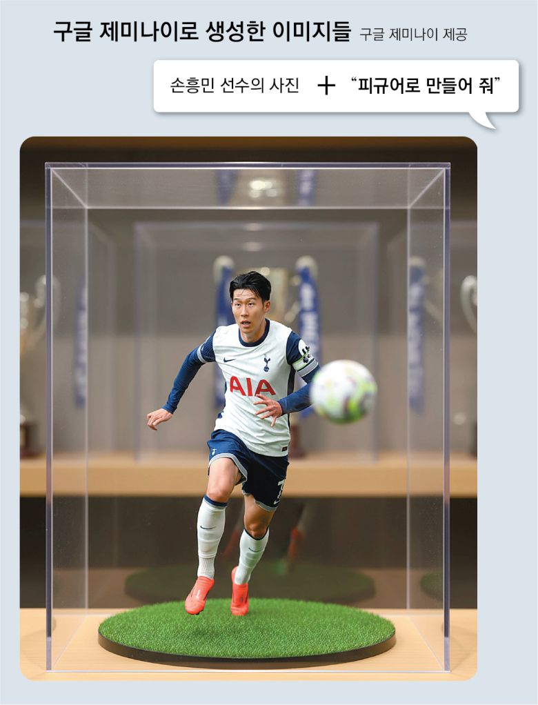 또 미국 메이저리그사커(MLS) LA FC의 손흥민 선수 등 인물 사진을 넣으면 똑같이 생긴 피규어를 만들어준다. 최근 각종 SNS에 나노바나나를 사용해 ‘3D 피규어’ 이미지로 만든 게시글이 대거 올라온 이유다. 올 초 챗GPT의 ‘지브리풍’ 이미지 생성 열풍을 연상케 한다.