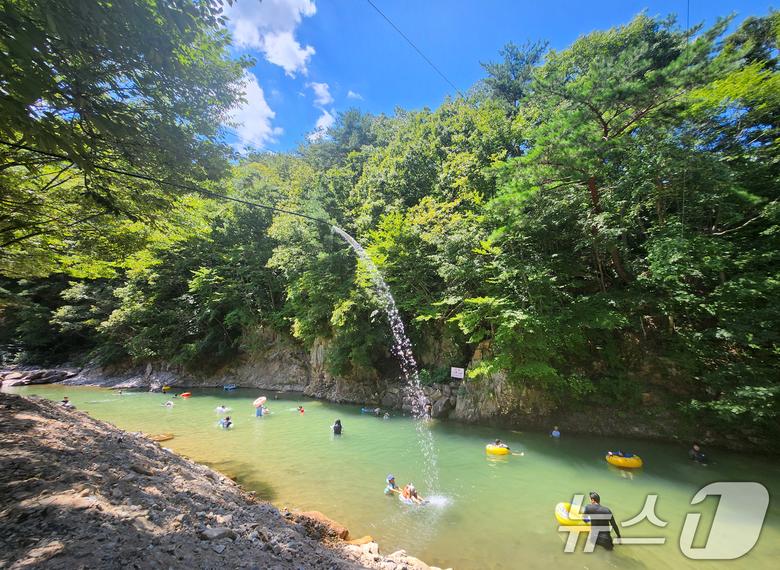 전북 전역에 폭염특보가 발효된 24일 전북 완주군 한 계곡에서 피서객들이 물놀이를 하며 더위를 식히고 있다. 2025.8.24/뉴스1 ⓒ News1 유경석 기자