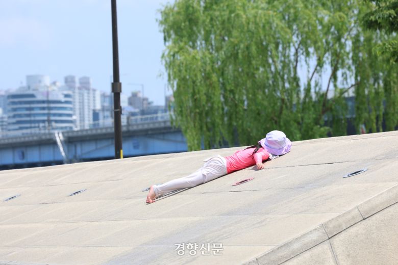 전국이 30도를 웃돌며 초여름 더위를 보인 지난 6월8일 서울 여의도 물빛광장을 찾은 어린이가 햇볕에 몸을 말리고 있다. 정효진 기자 |
