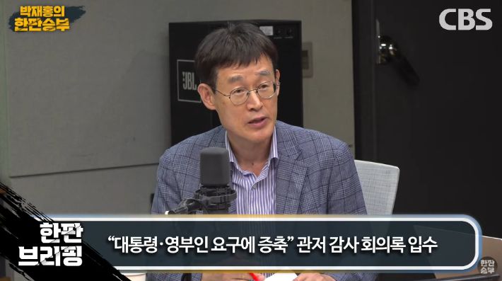 ◇ 박재홍> 제가 읽어드릴게요. 왜냐하면 기본적으로 여기에서 제일 위험한 게 뭐냐 하면 청사 관리 본부는 문서를 모두 냈어요. 극단적으로 이런 말을 합니다. 대통령과 영부인의 요구 사항 때문에 증축 범위를 축소하지 못한다. 그것을 요구하니까 비용 절감 이런 말도 모두 나와요. 비서실장 주재 회의에서 논의한 내용도 모두 나옵니다. 여기서 비서실장은 대통령 비서실장 회의겠죠. 그런데 여기서 총무비서관과 관리 비서관이 논의한 것도 여기 나와요. 제출된 문서에. 근데 지금 말씀하신 건 아마도 감사원장이 말씀하신 것은 관리 비서관으로 조사를 한정해 버립니다. 이 부분을 한정하면 안 된다. 조사를 비서실장 전반으로 확대해야 됐었다는 게 조은석 당시 감사위원의 주장이었던 거고.