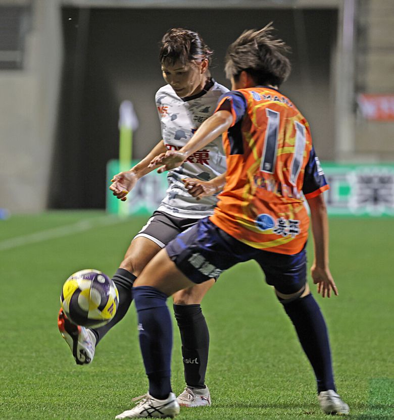 2025년 8월9일 일본 나가노현 나가노시 시노노이 도후쿠지 나가노 U 스타디움에서 알비렉스 니가타 레이디스의 9번 카와스미 나오미 선수가 머리로 공을 경합하고 있다. 나가노(일본)=이종근 선임기자