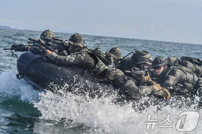(서울=뉴스1) 김예원 기자 = 육군 특수전사령부(특전사)가 25일부터 27일까지 충남 태안 안면도 해상훈련장 일대에서 2025년 한미연합훈련인 '을지 자유의 방패/타이거' (UFS/TIGER) 연합 해상 침투훈련을 실시했다.