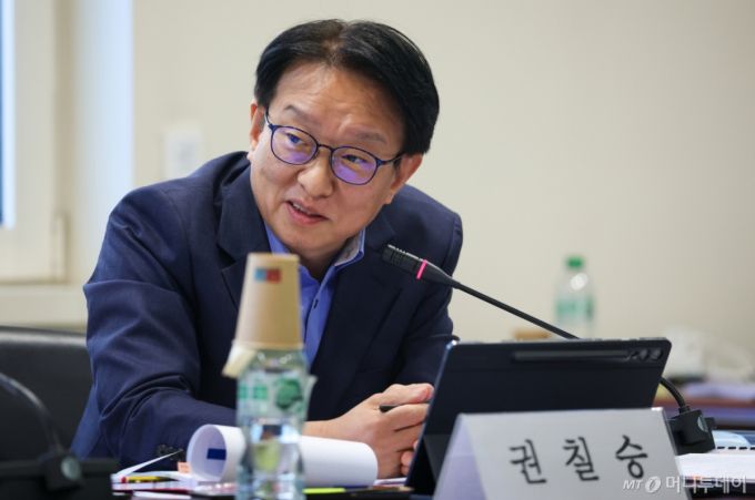 (파리=뉴스1) 이준성 기자 = 권칠승 더불어민주당 의원이 11일(현지시간) 프랑스 파리 주경제협력개발기구(OECD) 한국대표부에서 열린 국회 외교통일위원회 국정감사에서 최재철 주프랑스 대한민국 대사에게 질의하고 있다.?2024.10.11/뉴스1  Copyright (C) 뉴스1. All rights reserved. 무단 전재 및 재배포,  AI학습 이용 금지. /사진=(파리=뉴스1) 이준성 기자