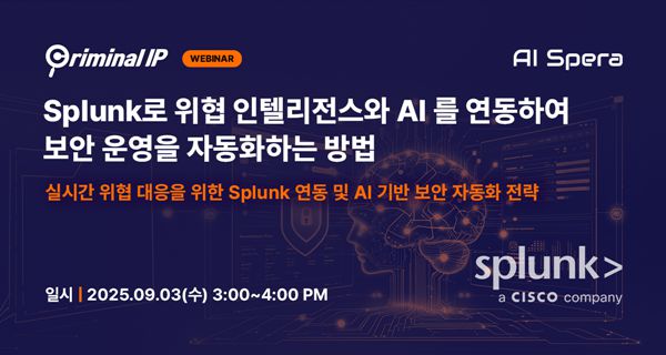 특히 이번 웨비나에서 ▲AI와 위협 인텔리전스를 활용한 차세대 보안 운영 방향성 ▲크리미널 IP 데이터를 스플렁크에 연동하는 기술 구조와 워크플로우 ▲실시간 이상 탐지와 자동 분류를 통한 보안 이벤트 선별 방법 ▲스플렁크·크리미널 IP·AI 모델을 결합한 실제 운영 사례 시연이 진행된다. 이 외에도 참석자들의 실시간 질문에 답변하는 Q&A 세션도 준비되어 있다.