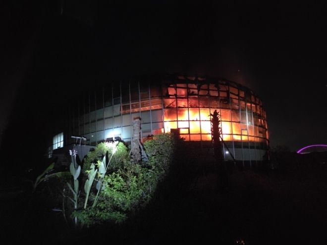28일 오전 4시 40분쯤 경북 경주시 북군동 보문단지 입구에 있는 경주 버드파크에서 불이 나 본관 건물 일부와 전시 동식물이 피해를 입었다. 경북소방본부 제공 |