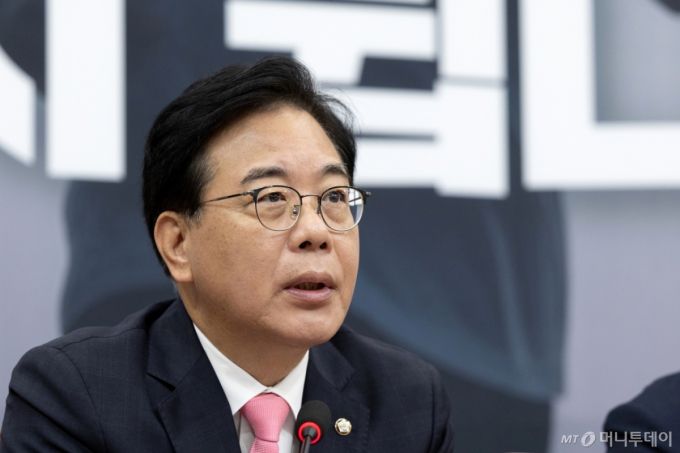 (서울=뉴스1) 이승배 기자 = 송언석 국민의힘 원내대표가 28일 서울 여의도 국회에서 열린 최고위원회의에서 발언하고 있다. 2025.8.28/뉴스1 Copyright (C) 뉴스1. All rights reserved. 무단 전재 및 재배포, AI학습 이용 금지. /사진=(서울=뉴스1) 이승배 기자 |