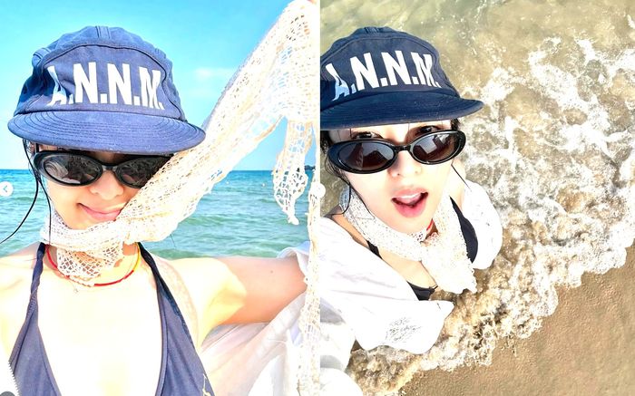 공개된 사진에는 김보라가 해변에서 비키니를 입고 여유를 즐기는 모습이 담겼다. 또 김보라는 스카프, 모자, 선글라스를 매치해 센스를 뽐냈다.