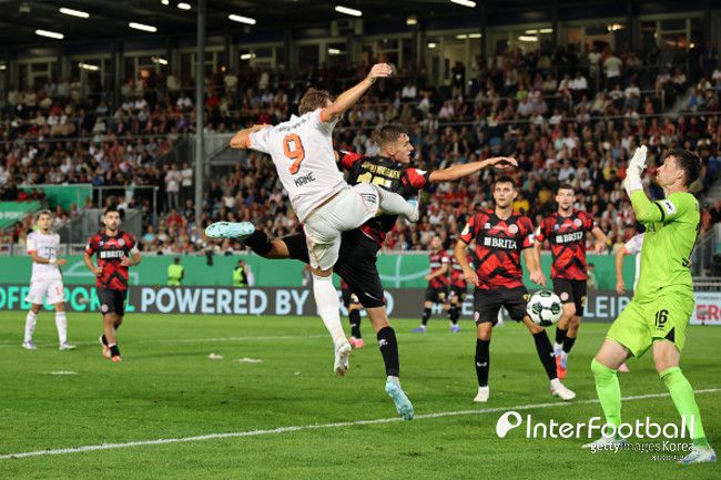 비스바덴이 추격했다. 후반 19분 메이가 왼쪽 측면에서 올린 크로스를 카야가 몸을 날려 슈팅하며 골을 만들었다. 후반 25분엔 플로토가 김민재와 경합에서 이기며 헤더를 보냈고, 이를 카야가 잡아 마무리하며 승부를 원점으로 돌렸다.