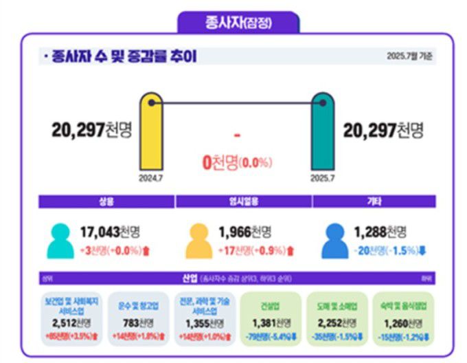 ◆ 7월 기준 사업체종사자 2029만7000명…전년 동월과 동일