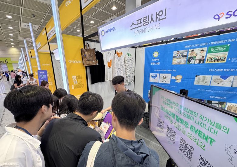 스프링샤인사회적협동조합(대표 김종수)은 8월 25일부터 26일까지 서울 코엑스에서 열린 ‘제2회 대한민국 사회적가치 페스타(SOVAC)’에 참가해 발달장애 예술가들의 작품을 활용한 친환경 제품을 선보였다고 밝혔다.