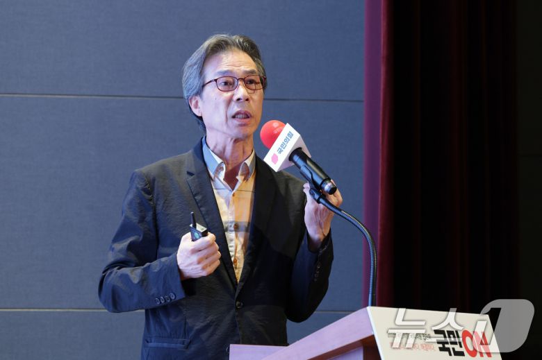 (인천=뉴스1) 신웅수 기자 = 박명호 동국대 정치외교학과 교수가 28일 오후 인천 인천국제공항공사 인재개발원에서 열린 국민의힘 연찬회에서 특강을 하고 있다. 2025.8.28/뉴스1