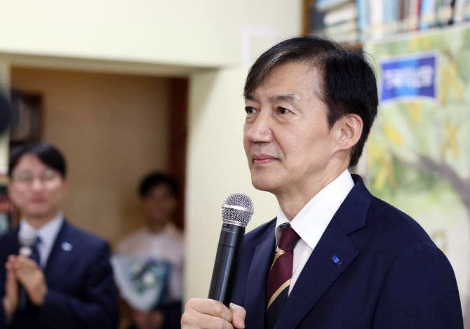 조국 조국혁신당 혁신정책연구원장이 지난 27일 전북 고창군 책마을해리에서 당원 간담회를 하고 있다. (사진=조국혁신당)