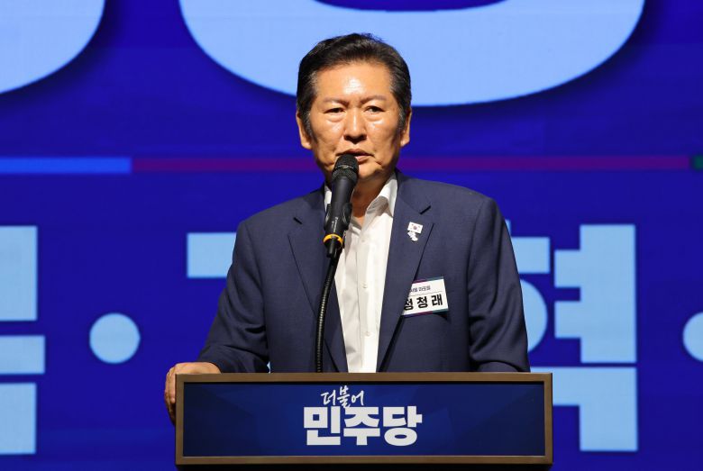 더불어민주당 정청래 대표가 28일 인천시 중구 파라다이스시티 컨벤션에서 열린 더불어민주당 의원단 워크숍에서 인사말을 하고 있다. /남강호 기자 |