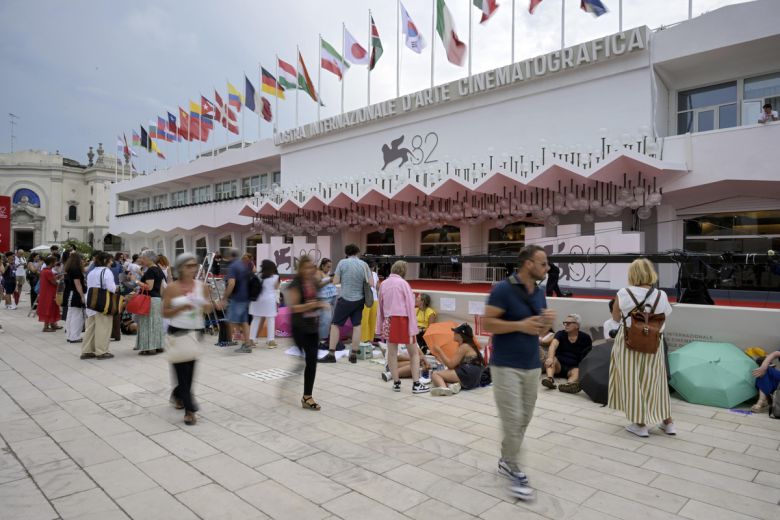 27일(현지시간) 이탈리아 리도섬에서 제82회 베니스국제영화제 개막식을 기다리는 사람들. EPA연합뉴스