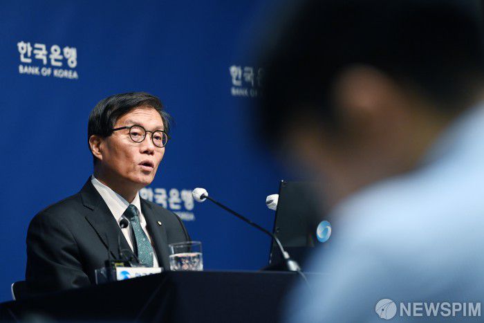 [서울=뉴스핌] 사진공동취재단 = 이창용 한국은행 총재가 28일 오전 서울 중구 한국은행에서 열린 금융통화위원회를 마치고 기자간담회를 하고 있다. 2025.08.28 photo@newspim.com |
