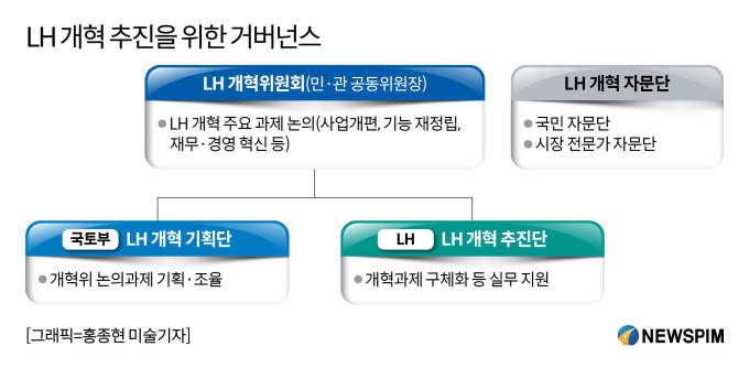 원활한 위원회 활동을 지원하기 위해 국토부 내부에 'LH 개혁 기획단'을, LH에는 'LH 개혁 추진단'을 각각 설치했다. 기획단이 위원회 논의 과제를 기획·조율하면, 추진단은 개혁과제를 구체화하는 등 실무 지원 역할을 맡는다.