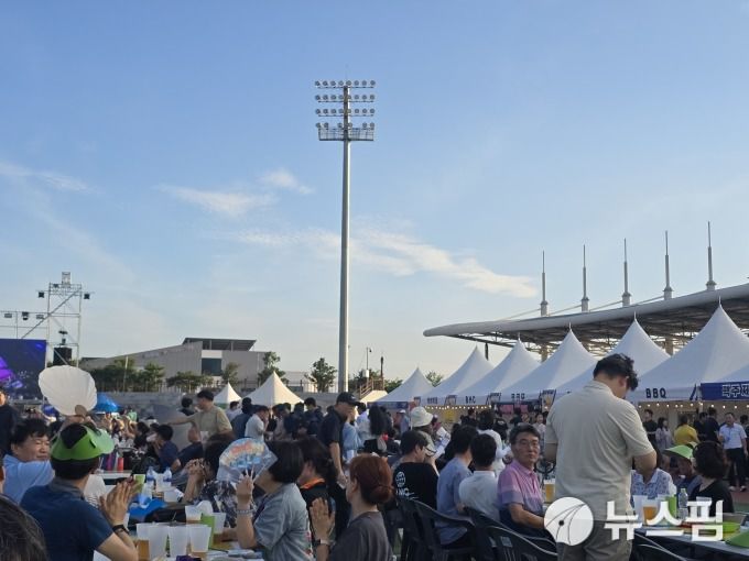 [강진=뉴스핌] 조은정 기자 = 강진하맥축제가 열린 28일 전남 강진군 강진종합운동장에 마련된 행사장에서 관광객들이 하멜촌맥주를 즐기고 있다. 2025.08.28 ej7648@newspim.com