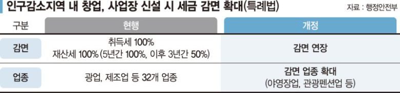 인구감소지역 稅혜택 늘린다… 창업시 취득세 5년간 면제