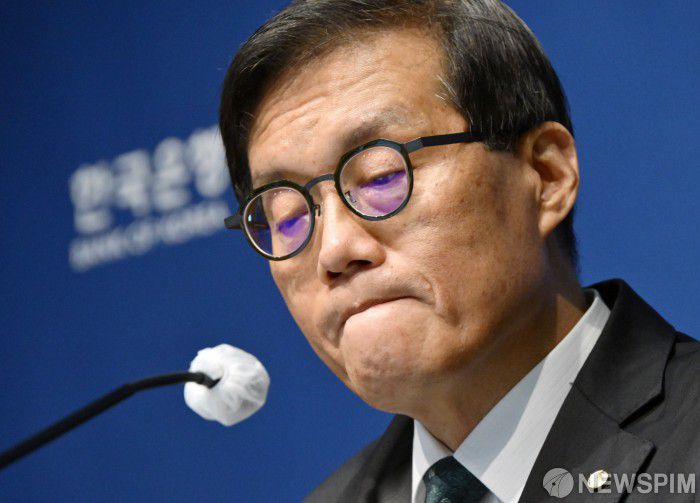 [서울=뉴스핌] 사진공동취재단 = 이창용 한국은행 총재가 28일 오전 서울 중구 한국은행에서 열린 금융통화위원회를 마치고 기자간담회를 하고 있다. 2025.08.28 photo@newspim.com