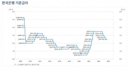 한국은행 기준금리 / 자료출처= 한국은행(2025.08.28 금통위 결과 반영) |