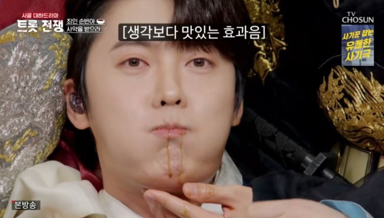 이날 방송에서 한국 트롯계를 대표하는 두 수장 조항조와 진성이 출격하며 각각 왕과 황제로 변신해 눈길을 끌었다. 두 사람이 대표 팀이 되어서 '미스터트롯' 멤버들이 팀에 속하고 대결을 펼치는데 이때 승리하면 상품이 주어지지만 패배하면 사약을 하사받게 된다. 이를 듣던 손빈아는 "내가 유일하게 안 먹어 본 것"이라고 너스레를 떨었다.