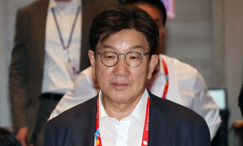 국민의힘 권성동 의원이 28일 인천 중구 인천국제공항공사 항공교육원에서 열린 2025 국민의힘 국회의원 연찬회에 참석하고 있다. 김건희 여사 관련 의혹을 수사 중인 특검팀은 이날 권 의원에 대한 구속영장을 청구했다. 인천=연합뉴스