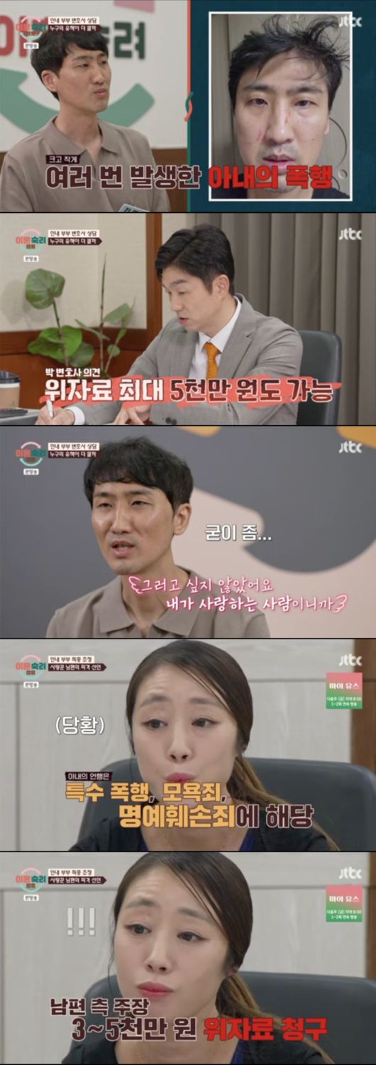 특히 아내의 폭행은 이혼 사유를 넘어 형사 처벌까지 이어질 수 있는 문제라는 지적도 나왔다. 남편 측 변호사는 "아내의 폭행으로 위자료 3천만 원에서 5천만 원까지 받을 수 있다"고 설명했다.