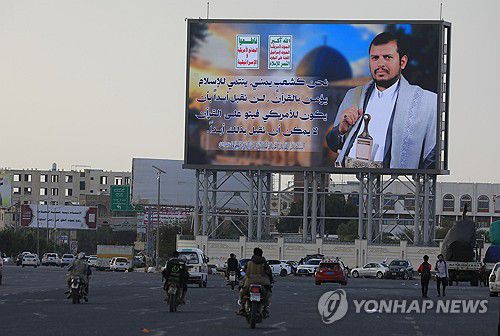 예멘 수도 사나의 후티 지도자 간판[EPA 연합뉴스 자료사진. 재판매 및 DB 금지]