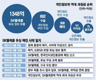 과징금 규모는 글로벌 사례와 비교해도 이례적이다. 미국 T모바일은 1억1000만건 유출로 216억원, AT&T는 890만건 유출로 178억원의 제재를 받는 등 유심 정보가 해킹당한 통신사에 200억원 안팎의 과징금이 부과됐다.