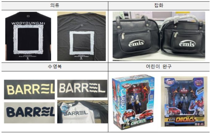 잡화도 2개 브랜드사 3개 제품 모두 위조로 분류됐다. 제품 크기와 로고 위치가 정품과 다르며, 가방류에서는 부자재 형태와 재질이 일치하지 않았다. 해당 브랜드에서 생산하지 않는 매트가 발견돼 브랜드 도용이 확인되기도 했다. 어린이 완구는 3개 브랜드사 8개 제품 중 3개 제품이 빈약한 품질로 인해 유해 물질 노출 위험이 있는 것으로 드러났다.