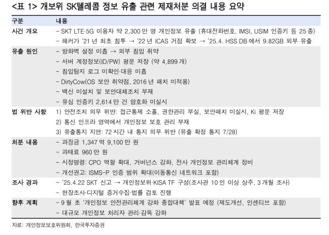 개인정보보호위원회는 SK텔레콤의 사이버 침해 관련 제재를 위한 비공개 전체회의를 열고 전날 공식 브리핑을 통해 과징금 1348억 원을 부과했다. 기존 시장 예상과 유사한 수준으로 주가는 0.9% 하락에 그쳤다.