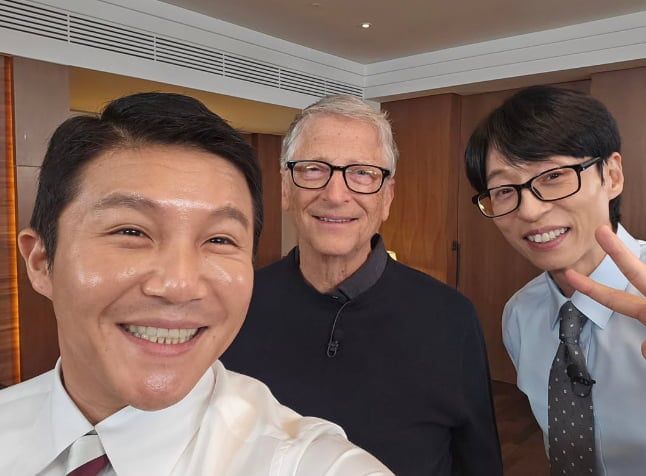 빌 게이츠 게이츠 재단 이사장(가운데)과 방송인 조세호, 유재석./인스타그램 |