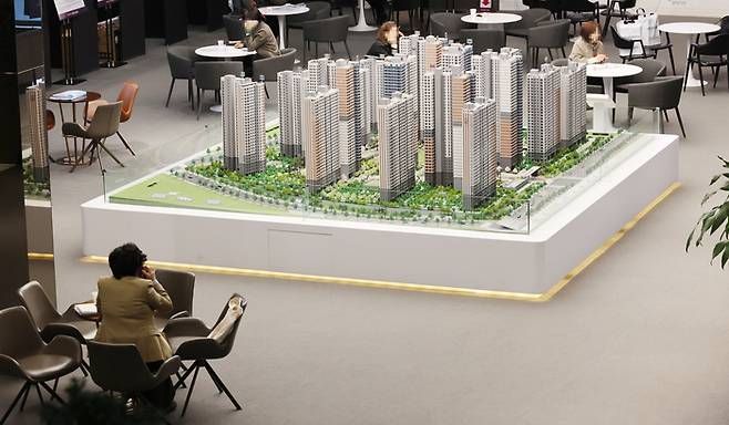 방문객 없이 직원들만 보이는 한 아파트 견본주택 모습 [사진 = 연합뉴스]