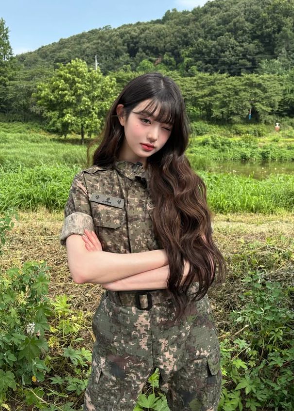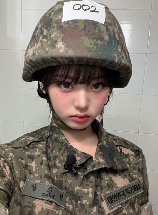 (MHN 이윤비 기자) 그룹 아이브 장원영이 군복을 입고 미모를 뽐냈다.