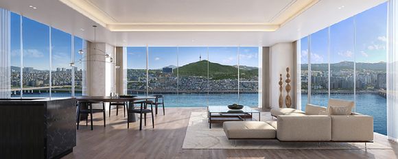 '실내 개방감' 또한 한강 조망을 위한 중요한 요소다. 현대건설은 우물 천장고를 최대 3m로 높여 공간감을 확장했고, 조합원 세대에 100% 포켓 테라스를 적용해 거실과 이어지는 열린 외부 공간을 마련했다. 2층 높이로 설계된 포켓 테라스를 통해 바람과 빛을 한층 더 자연스럽게 유입시키며 개방감을 확보했다.