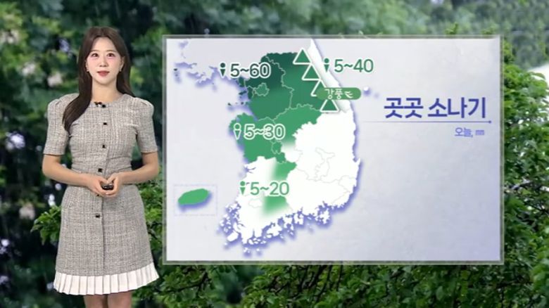 내리는 양은 인천과 중북부 지역에 5에서 60mm, 서울과 경기 남부, 강원 중남부에 최대 40mm, 호남과 제주는 5에서 20mm가 되겠습니다.