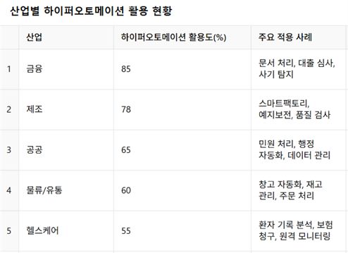 국내 하이퍼오토메이션 시장이 새로운 성장 곡선에 진입하고 있다. 단순 반복 업무를 자동화하던 RPA 중심의 1세대 단계를 넘어, AI 에이전트가 의사결정과 실행을 아우르는 2세대 하이퍼오토메이션이 산업 전반에서 확산되고 있다. 제조·금융·공공·물류 등 주요 산업군은 물론, 중견·중소기업까지 PoC(개념검증)와 본격 도입 사례가 늘고 있으며, 이는 곧 기업 경쟁력과 디지털 전환 성패를 가르는 핵심 축이 되고 있다.