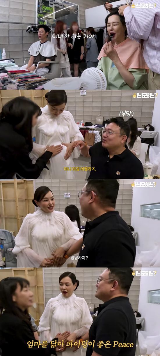 여기서 그치지 않고 이하늬는 직접 감독의 손을 자신의 배에 갖다 댔다. 이하늬는 "배가 땅땅하다"며 "얘가 차서 잠을 못잔다. 파이팅이 넘친다. 보통 아니다"라고 고개를 내저었다.