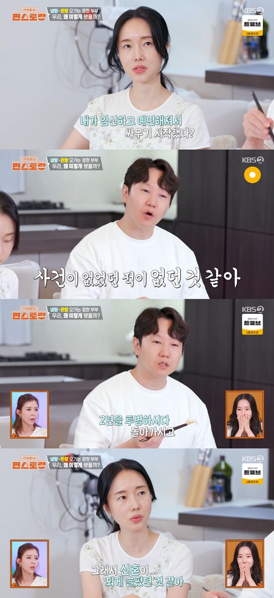 이날 방송에서 이정현이 "내가 임신하고 예민해지면서 싸우기 시작했나?"라며 부부의 싸움 역사를 되짚어 봤다. 남편은 "이벤트가 없었던 적이 없는 것 같다. 결혼하고 나서 다음 달에 장모님이 아프기 시작하셨다"라고 밝혔다.