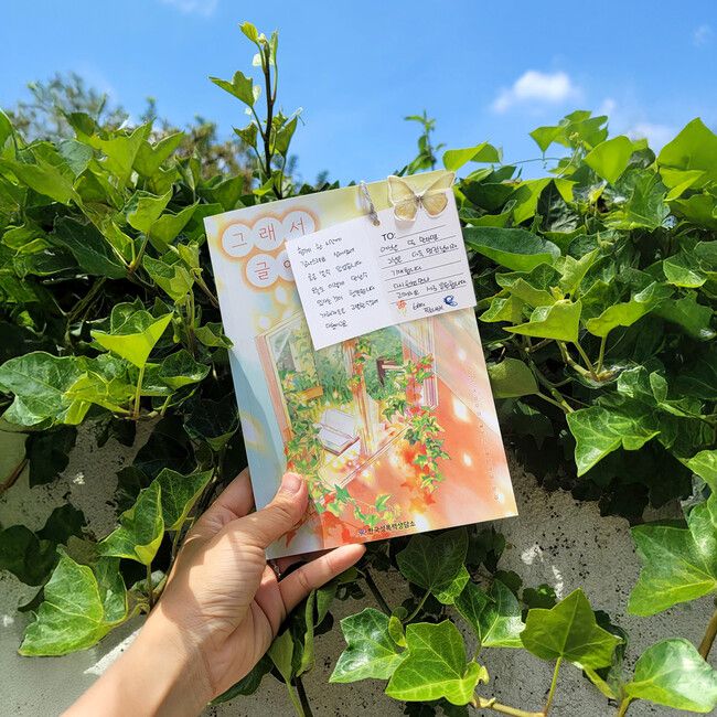 성폭력 피해 생존자 7명이 공동으로 펴낸 문집 ‘그래서 글을 써’ 표지. 참여자 ‘푸른나비’(필명)가 ‘아픔의 동료’에게 건네는 말을 포스트잇에 써 붙였다. 한국성폭력상담소 제공 |
