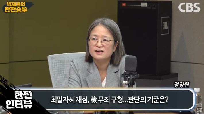 ◇ 박재홍> 박재홍 한판승부 2부 문을 열었습니다. 최근에 최말자 씨 사건 우리 시청자 여러분 기억하실지 모르겠는데 무려 61년 만에 재심을 통해 억울함을 풀게 된 사건인데요. 이 과정에서 이 최말자 씨에게 무죄를 구형하면서 진심 어린 사과를 전했던 검사가 있습니다. 당시엔 부장검사셨는데 이번에 신간인 유무죄의 세계의 사랑법을 출간하셨다고 해서 저희 제작진이 또 급하게 모셨습니다. 오늘 만나보죠. 정명원 대구서부지청 차장검사님이십니다. 어서 오십시오.